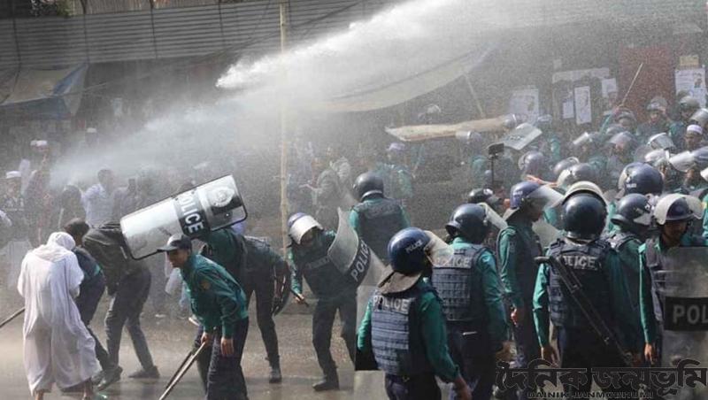 শাহবাগে শিক্ষকদের সমাবেশে পুলিশের লাঠিপেটা, জলকামান