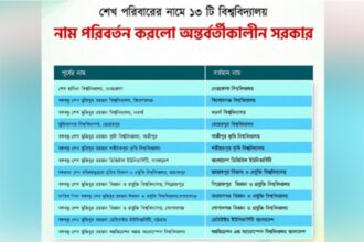 জন্মভূমি ডেস্ক : দেশের ১৩টি পাবলিক বিশ্ববিদ্যালয় থেকে সরানো হয়েছে পতিত সরকারের সাবেক প্রধানমন্ত্রী শেখ হাসিনা ও তার পরিবারের নাম। পরিবর্তনের ক্ষেত্রে বিশ্ববিদ্যালয়গুলোর বেশিরভাগ সংশ্লিষ্ট জেলার নামে নামকরণ করা হয়েছে। আজ বৃহস্পতিবার (১৬ জানুয়ারি) অন্তর্বর্তীকালীন সরকারের উপদেষ্টা পরিষদে এই নাম পরিবর্তন করা হয়েছে।