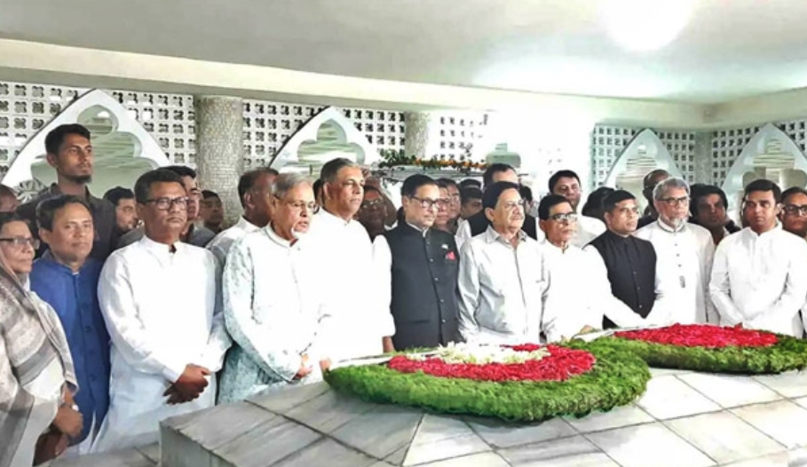 আওয়ামী লীগের সাধারণ সম্পাদক এবং সড়ক পরিবহন ও সেতুমন্ত্রী ওবায়দুল কাদেরের নেতৃত্বে প্রথমে প্রধানমন্ত্রীর পক্ষ থেকে দলের কেন্দ্রীয় নেতারা এ শ্রদ্ধা নিবেদন করেন। পরে আওয়ামী লীগের পক্ষে শ্রদ্ধা জানান কেন্দ্রীয় নেতারা। সেখানে তারা এক মিনিট দাঁড়িয়ে নীরবতা পালন করেন।