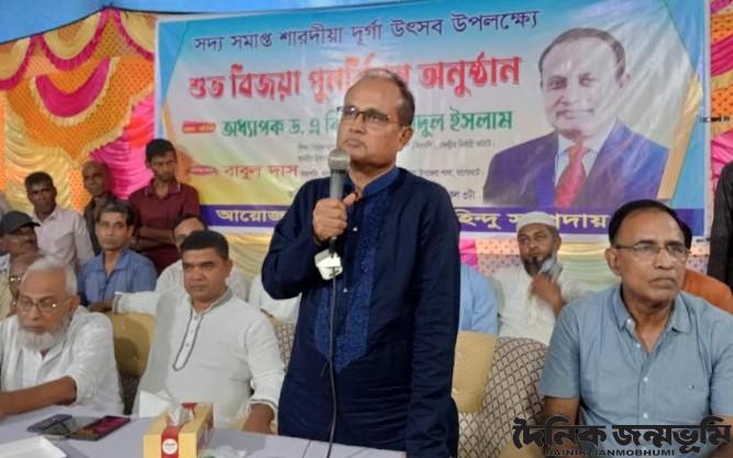 শরণখোলা আঞ্চলিক অফিসঃ বাংলাদেশ জাতীয়বাদী দলের (বিএনপি) কেন্দ্রীয় শিক্ষা বিষয়ক সম্পাদক ও বাংলাদেশ উন্মুক্ত বিশ্ববিদ্যালয়ের ভিসি ডঃ ওবায়দুল ইসলাম বলেছেন, বাংলাদেশে সংখ্যালঘু বলে কিছু নেই। হিন্দু,বৌদ্ধ,খ্রীষ্টান,মুসলিম সবাই আমরা বাংলাদেশী। বিএনপি সাম্প্রদায়িকতায় বিশ্বাস করেনা। সকলে মিলে মিশে দেশ পুনর্গঠনে কাজ করতে হবে। শুক্রবার (২৪ অক্টোবর) বিকেলে শরণখোলা উপজেলা সদর রায়েন্দা বাজার কেন্দ্রীয় কালী মন্দিরে অনুষ্ঠিত শুভ বিজয়া পুনর্মিলনী অনুষ্ঠানে প্রধান অতিথির বক্তব্যে তিনি এ কথা বলেন। শরণখোলা উপজেলা পুজা উদযাপন পরিষদের সভাপতি বাবুল দাসের সভাপতিত্বে অনুষ্ঠিত সভায় অন্যান্যের মধ্যে বক্তব্য রাখেন, উপজেলা বিএনপির সাবেক সভাপতি মতিয়ার রহমান খান, সাধারণ সম্পাদক মোঃ বেল্লাল হোসেন মিলন, শরণখোলা উপজেলা হিন্দু বৌদ্ধ খ্রীষ্টান ঐক্য পরিষদের সভাপতি আশীষ দাস, শরণখোলা উপজেলা পুজা উদযাপন পরিষদের সেক্রেটারী গোপাল কর্মকার, শিক্ষক ষড়ানন সিকদার, তাপস ভৌমিক, শিক্ষক রনজিতা রানী প্রমূখ।