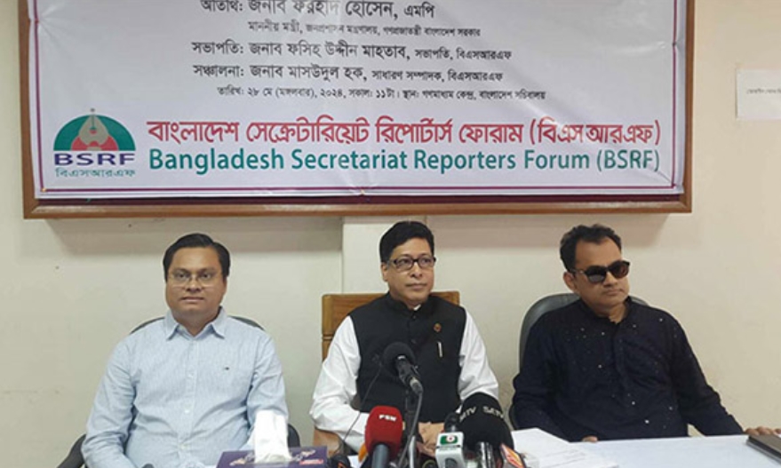 মঙ্গলবার (২৮ মে) দুপুরে সচিবালয়ে গণমাধ্যম কেন্দ্রে বাংলাদেশ সেক্রেটারিয়েট রিপোর্টার্স ফোরাম (বিএসআরএফ) আয়োজিত ‘বিএসআরএফ সংলাপে’ অংশ নিয়ে জনপ্রশাসনমন্ত্রী এ তথ্য জানান।