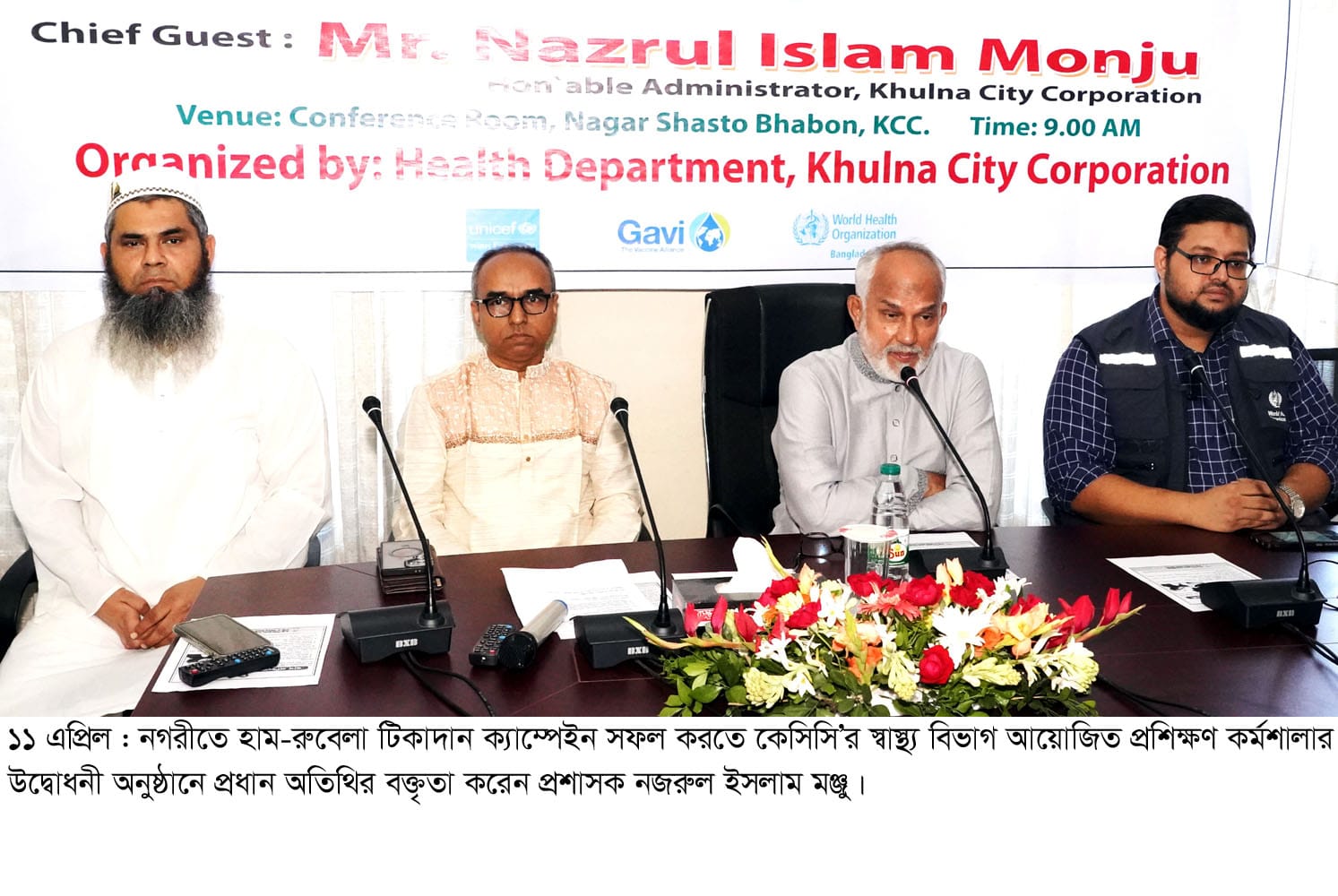 খুলনা সিটি কর্পোরেশনের প্রশাসক নজরুল ইসলাম মঞ্জু বলেছেন, শিশুদের স্বাস্থ্য সুরক্ষায় সরকার অত্যন্ত যত্নবান। শিশুদের বিভিন্ন রোগের সংক্রমণ থেকে রক্ষা করতে স্বাস্থ্য অধিদপ্তরের মাধ্যমে সম্প্রসারিত টিকাদান কর্মসূচির আওতায় দেশব্যাপী নিয়মিত বিভিন্ন টিকাদান ক্যাম্পেইন পরিচালিত হয়ে থাকে। তারপরও হঠাৎ দেশে শিশুদের মধ্যে হামের প্রাদুর্ভাব দেখা দিয়েছে এবং সরকার জরুরি ভিত্তিতে হাম-রুবেলা টিকাদান ক্যাম্পেইন শুরু করেছে। একটি শিশুও যেন এ ক্যাম্পেইন থেকে বাদ না পড়ে সেদিকে লক্ষ্য রাখার জন্য তিনি সংশ্লিষ্টদের আন্তরিকতার সাথে দায়িত্ব পালনের নির্দেশ দেন।
