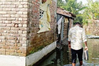 সাতক্ষীরা প্রতিনিধি : একটু বৃষ্টি হলেই সাতক্ষীরা শহরসহ আশপাশের অসংখ্য গ্রাম ডুবে যায়। রাস্তার উপরেই থাকে কোমর সমান পানি আর উঠানে বুক সমান। বারান্দা, ঘর, রান্নাঘরে মাছ খেলা করে। টয়লেটগুলো থাকে পানির নিচে। শিক্ষা প্রতিষ্ঠানের মধ্যে পানি। পশুপাখির মরা দেহ, টয়লেটের বর্জ্য ভেসে বেড়ায় এক উঠান থেকে অন্য উঠানে। এভাবে চলে বছরের ছয় মাস। ফলে, মারা যাচ্ছে এলাকার অধিকাংশ গাছপালা। মানুষজন এলাকা ছেড়ে অন্যত্র চলে যায় বর্ষার দিনগুলোতে। আবার কেউ স্থায়ীভাবে অন্য এলাকায় ঘর তুলছে।