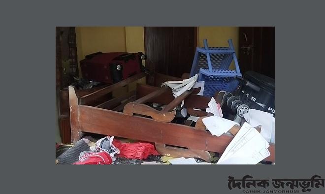 একপর্যায়ে হাজী কামরুলের কাছে চাবি থাকার সূযোগে তাদের পরিকল্পনা মাফিক গেটের তালা খুলে ৬ অক্টোবর রাতে চেয়ারম্যানের কাছের লোক বলে পরিচিত গোলাম রসুল, একই এলাকার গফ্ফর, নূর হোসেন, হেলাল, বেলাল ও তাদের বোন সেলিনা, হাফিজুল ইসলাম ও তার স্ত্রী মারিয়ম, সালমা, কিবরিয়া ও জুয়েলসহ ২০/২৫জন তার বাড়ির তালা খুলে ঘরে ঢোকে। তারা দুটি আলমারির তালা ভেঙে ১০ ভরি সোনার গহনা, কাপড়, ব্যবহৃত জিনিসপত্র, ড্রেসিং টেবিলের ড্রয়ার ভেঙে দুই লাখ নগদ টাকা ও চারটি মোবাইল, জাতীয় পরিচয়পত্র, জন্ম নিবন্ধনসহ গুরুত্বপূর্ণ কাগজপত্র লুট করে। হামলাকারিরা তার ঘরের জানালার গ্লাস, মটর সাইকেল, সেলাই মেশিন, ফ্রিজ, টেলিভিশন, টেবিল ফ্যানসহ বিভিন্ন আসবাবপত্র ভাংচুর করে নিজেদের তালা লাগিয়ে দেয়। ধারালো জিনিস দিয়ে বালিশ ছিঁড়ে ফেলা হয়। কয়েকদিন পর তার বাবা দরজায় একটি তালা মেরে আসলে সেটিও রাতে ভেঙে ফেলা হয়। ভাঙচুর ও লুটপাটে তার ২২ লক্ষাধিক টাকার ক্ষতি হয়েছে। এ ছাড়া ৬ সেপ্টেম্বর ইজিবাইকের তালা ভেঙে পাখর নজরুলের বাড়ি থেকে আব্দুল বারীর বাড়িতে রাখা হয়। তাদের হামলার ভয়ে এক মাস যাবৎ তিনি বাড়ি ফিরতে পারছেন না। তার ছেলে শাওনের বয়স ১০ বছর আট মাস ছয়দিন হলেও তাকে ফাঁসাতে মামলায় বয়স ১৯ দেখানো হয়েছে। এমনকি জামিনে মুক্তি পেলে ছেলে ও স্ত্রীকে বাড়ি নিয়ে যেতে পারবেন কিনা তা নিয়ে উদ্বিগ্ন তিনি।