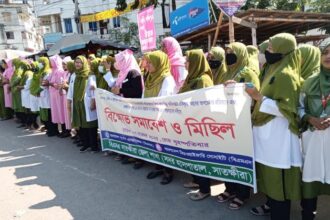 সাতক্ষীরা প্রতিনিধি: নাসিং ও মিডওয়াইফারি অধিদপ্তর বিলুপ্ত করে অন্য কোনো অধিদপ্তরের সঙ্গে একীভূত করার অপচেষ্টার প্রতিবাদে সারাদেশের ন্যায় সাতক্ষীরায় কালো ব্যাচ ধারণ করে বিক্ষোভ ও মানববন্ধন কর্মসূচি পালন করেছে বাংলাদেশ নার্সেস অ্যাসোসিয়েশন (বি.এন.এ) সাতক্ষীরা জেলা শাখা।