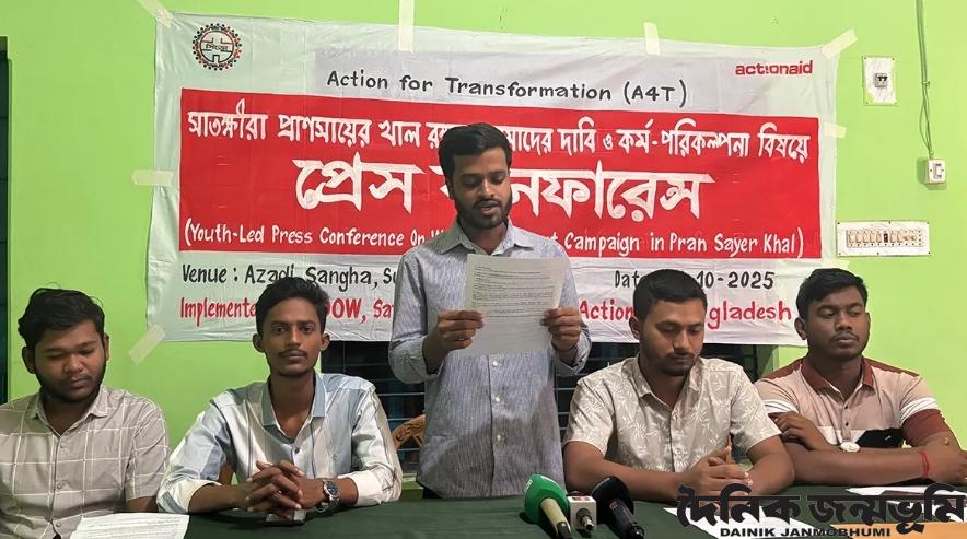 সাতক্ষীরার প্রাণসায়ের খাল রক্ষা, জলাবদ্ধতা নিরসন ও পানির অধিকার নিশ্চিতকরণের দাবিসহ কর্মপরিকল্পনা ঘোষণা করেছে সাতক্ষীরা ইয়ুথ অ্যালায়েন্স।
