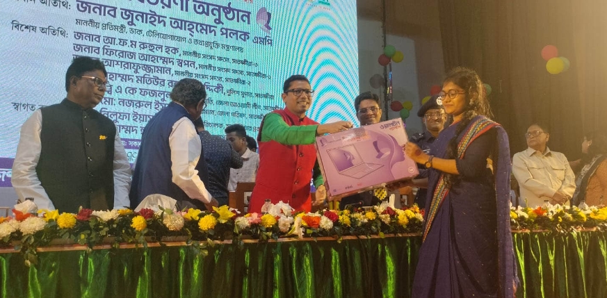 আজ শুক্রবার সকালে তথ্য ও টেলিযোগাযোগ প্রতিমন্ত্রী জুনায়েদ আহমেদ সাতক্ষীরা শিল্পকলা একাডেমিতে ‘হার পাওয়ার প্রকল্প প্রযুক্তির সহায়তায় নারীর ক্ষমতায়ন’ শীর্ষক একটি প্রকল্পের আওতায় নারীদের ল্যাপটব বিতরন অনুষ্ঠানে এসব কথা বলেন।