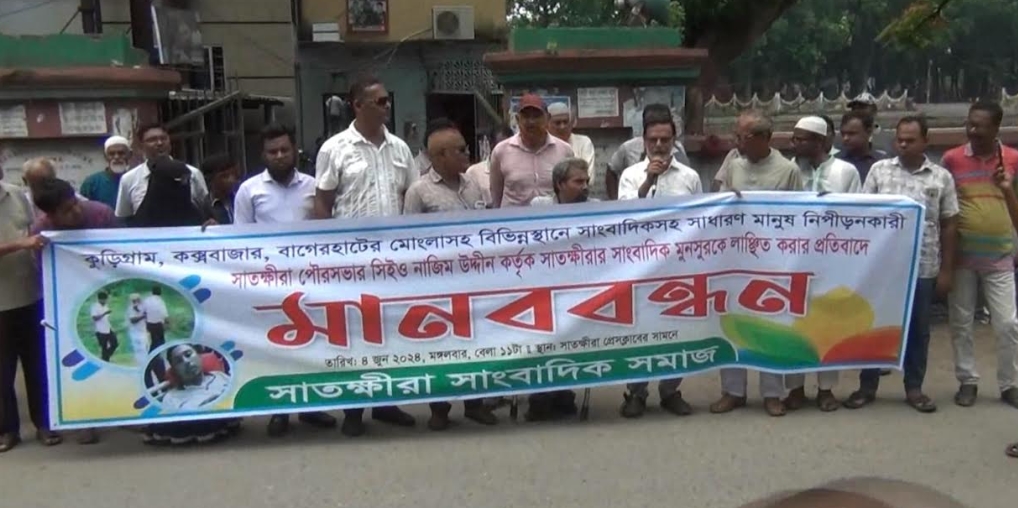 সাতক্ষীরায় সাংবাদিককে লাঞ্চিত করার প্রতিবাদে মানববন্ধন
