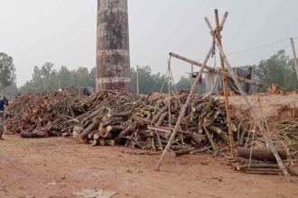 শ্যামনগরে বন্ধ হচ্ছে না অবৈধ ইটভাটা পড়ানো হচ্ছে কাঠ।
