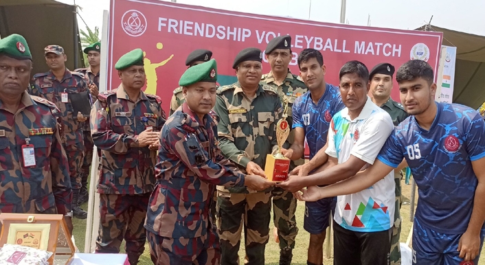 প্রীতি ভলিবল খেলাটি শেষে বিজয়ী ও রানারআপ দলের মধ্যে ট্রফি ও সম্মাননা স্মারক প্রদান করেন বিজিবি ও বিএসএফ কর্মকর্তারা।