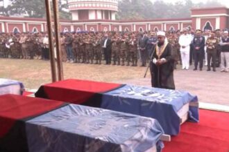 ডেস্ক রিপোর্ট : সুদানে সন্ত্রাসী হামলায় নিহত ছয় শান্তিরক্ষী সেনাসদস্যের জানাজা অনুষ্ঠিত হয়েছে। রোববার (২১ ডিসেম্বর) ঢাকা সেনানিবাসের কেন্দ্রীয় মসজিদে তাদের জানাজা অনুষ্ঠিত হয়।
