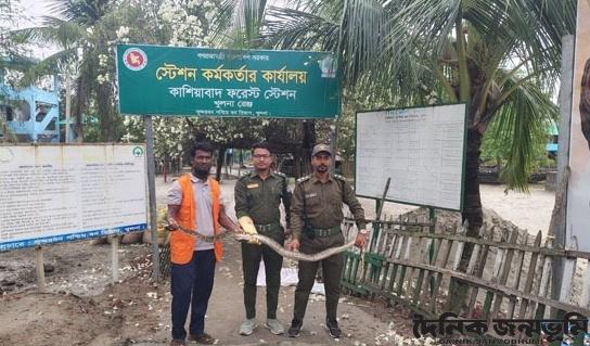 ডেস্ক রিপোর্ট : সুন্দরবন হতে লোকালয়ে আসা একটি অজগর সাপ উদ্ধার করে তা বনের মধ্যে অবমুক্ত করা হয়েছে। শুক্রবার (৩০ মে) সকাল ৮ টার দিকে কাশিয়াবাদ স্টেশন কর্মকর্তা মোঃ শফিকুল ইসলাম শাহিদের নেতৃত্বে অভিযান চালিয়ে সাপটি উদ্ধার করা হয়। এর আগে উপজেলার মঠবাড়ি গ্রামের আতিয়ার রহমান গাজীর বাড়িতে অজগর সাপটি স্থানীয়রা দেখতে পেয়ে বন বিভাগকে খবর দেয়। তাৎক্ষণিক বন কর্মিরা সহ ভিটিআরটি ও সিপিজি সদস্যরা ঘটনাস্থলে উপস্থিত হয়ে সাপটি উদ্ধার করে। সাপটি ৮ ফুট লম্বা ও ১০ কেজি ওজন ছিল। খুলনা রেঞ্জের সহকারি বন সংরক্ষক (এসিএফ) মোঃ শরিফুল ইসলাম বলেন, উদ্ধারকৃত অজগর সাপটি কাশিয়াবাদ স্টেশনের অধিনস্থ সত্যপিরের ভারানী এলাকায় অবমুক্ত করা হয়েছে।