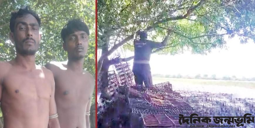 শরণখোলা অফিস : সুন্দরবন পূর্ব বন বিভাগের টিয়ারচর বনাঞ্চলে অভয়ারণ্যের খালে বুধবার দুপুরে কাকড়া ধরার সময় দুই জেলেকে আটক করেছে বনরক্ষীরা। জব্দ করা হয়েছে ডিংগি নৌকাসহ শতাধিক কাকড়া ধরার নিষিদ্ধ চারু। বনবিভাগ সূত্রে জানা যায়, সুন্দরবন পূর্ব বন বিভাগের শরণখোলা রেঞ্জের কোকিলমনি ফরেষ্ট টহল ফাঁড়ির বনরক্ষীরা বুধবার দুপুরে নিয়মিত টহল কালে সুন্দরবনের টিয়ারচরের উত্তর পাশে খালে একটি নৌকার জেলেদের কাকড়া ধরার চারু বসাতে দেখতে পায়। বনরক্ষীরা এগিয়ে গিয়ে ডিংগি নৌকায় থাকা দুই জেলেকে আটক করেন। এ সময় জব্দ করা হয় ডিংগি নৌকাসহ ১২৮টি নিষিদ্ধ কাকড়া ধরার চারু। আটক জেলেরা হচ্ছেন, বিদ্যুৎ রায় (২৬) ও তুহিন সরদার (৩০)। এদের বাড়ী খুলনার বটিয়াঘাটা এলাকায় বলে বনরক্ষীরা জানান। সুন্দরবন পূর্ব বন বিভাগের শরণখোলা রেঞ্জ কর্মকর্তা ( এসিএফ) রানা দেব বলেন, আটক জেলেরা কাকড়া ধরার মেয়াদ উত্তীর্ণ পাশ নিয়ে সুন্দরবনের অভয়ারণ্যের খালে কাকড়া ধরার প্রস্ততি নিয়েছিলো। আটক জেলেদের বিরুদ্ধে বন আইনে মামলা রেকর্ড করে বুধবার বিকেলে মামলার আসামীদের বাগেরহাট আদালতে চালান দেওয়া হয়েছে। আসন্ন দুবলারচরে রাস উৎসবের কারণে ২৭ অক্টোবর থেকে ৫ নভেম্বর পর্যন্ত সুন্দরবনে সব ধরনের মাছ ধরায় নিষেধাজ্ঞা জারী করা হয়েছে বলে এসিএফ জানিয়েছেন।