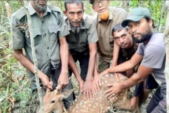 সিরাজুল ইসলাম, শ্যামনগর : শ্যামনগর উপজেলায় সাতক্ষীরা রেঞ্জ পশ্চিম সুন্দরবনে বন বিভাগ ও সিপিজি সদস্য যৌথ অভিযানে শনিবার দুপুর ১২টার দিকে ফাঁদ সহ জীবিত হরিণ উদ্ধার করেছে বন বিভাগ। বনবিভাগ সূত্রে জানা যায় গোপন সংবাদের ভিত্তিতে কদমতলা ফরেস্ট স্টেশন কর্মকর্তা সোলায়মান নির্দেশে চুনকুড়ী টহল ফাঁড়ী ওসি সজল মজুমদার নেতৃত্বে বন বিভাগ সদস্য ও সি পিজি সদস্যদের নিয়ে সুন্দরবন গহীনে চালতে বেড়ে খাল নামক স্থানে অভিযান চালায়। এ সময় হরিণ ধরার লাইলনের দড়ি ফাঁস সহ জীবিত হরিণ উদ্ধার করে। উদ্ধারকৃত জীবিত হরিণ হাড়দোহা খাল নামক স্থানে অবমুক্ত করে। হরিন ধরার ফাঁদ আনুমানিক ২৬ পিস। হরিণ শিকারীরা বনবিভাগের উপস্থিত টের পেয়ে গহীন সুন্দরবনে পালিয়ে যায়। এ বিষয়ে স্টেশন কর্মকর্তা সোলেমান সাথে কথা হলে তিনি জানান ফাঁস দিয়ে হরিণ ধরছে কিছু হরিণ শিকার চোরারা। এজন্য প্রতিনিয়ত বনবিভাগের সদস্য সহ সি পিজি সদস্য অভিযান পরিচালনা করছে। এটা অব্যহত থাকবে। কদমতলা স্টেশন কর্মকর্তা? সোলায়মান হোসেন আরো বলেন সুন্দরবনের হরিণ শিকারীদের হরিণ শিকার বন্ধের জন্য আমরা রাত দিন নির্লসভাবে টহল করে যাচ্ছি¡তিনি আরো বলেন সুন্দরবনের দায়িত্ব শুধু বন বিভাগের নয় এ দেশের ১৮ কোটি মানুষের সুন্দরবন রক্ষার দায়িত্ব রয়েছে তাই সুন্দরবনের মায়াবী হরিণ অহরহ স্বীকার করছে এক শ্রেণীর পেশাদার শিকারীরা তাই আসন সকলেই মিলে সুন্দরবনের এই হরেন শিকার বন্ধে এগিয়ে আসে এলাকায় যারা বসবাস করছেন তারাও অনেকে জানেন কারা এই হরিণ শিকারের সাথে জড়িত রয়েছে আপনারা এদেরকে খোঁজ নিয়ে চিহ্নিত করে বনবিভাগ কোস্ট গার্ড অথবা সংশ্লিষ্ট প্রশাসনকে অবিহিত করুন সুন্দরবন রক্ষায় এগিয়ে আসন! এ ব্যাপারে কথা হয় সাতক্ষীরা সহকারী বন সংরক্ষণ মশিউর রহমানের সাথে তিনি এই প্রতিপাদকে জানান ভাই আপনি তো সুন্দরবনের হরিণ শিকার সহ নানা বিষয় নিয়ে প্রতিনিয়ত পত্রিকায় খবর প্রকাশ করে চলছেন আপনার লেখার মাধ্যমে এলাকার সংশ্লিষ্ট সকলকে অনুরোধ করব সুন্দরবনে হরিণ শিকার কারা করছে তাদেরকে চিহ্নিত করে বন বিভাগ অথবা প্রশাসনের কাছে অভিযোগ দিন সুন্দরবনে হরিণ শিকার বন্ধের জন্য সকলকে এগিয়ে আসার জন্য অনুরোধ করছি