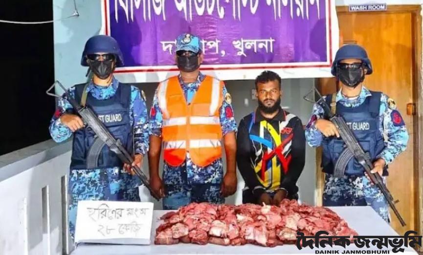 ডেস্ক রিপোর্ট : সুন্দরবন থেকে ফের হরিণের মাংসসহ শিকারী আটক হয়েছে। ২৮ কেজি হরিণের মাংসসহ ইয়াসনি গাজি (২৭) নামের এক শিকারীকে আটক করেেছ কোস্টগার্ড। বৃহস্পতিবার (১৩ মার্চ) রাতে সুন্দরবন সংলগ্ন নলিয়ানের বালুর মাঠ এলাকা থেকে মাংসসহ ওই শিকারীকে আটক করা হয়। আটক শিকারী ও জব্দকৃত হরিণের মাংস হড্ডা ফরেস্ট অফিসে হস্তান্তর করা হয়েছে। আটককৃত হরিণ শিকারী ইয়াসিন গাজি (২৭) খুলনা জেলার দাকোপ থানার বাসিন্দা। শুক্রবার (১৪ র্মাচ) সকালে ফরেস্ট গার্ড সদর দপ্তরের মিডিয়া কর্মকর্তা লেফটেন্যান্ট কমান্ডার মোঃ সিয়াম-উল-হক এ তথ্য জানান। তিনি বলেন, গোপন সংবাদের ভিত্তিতে অভিযান চালিয়ে মাংসসহ এক শিকারীকে আটক করা হয়। বন্যপ্রাণী হত্যা ও পাচার রোধে সুন্দরবনের জীববৈচিত্র্য স্বাভাবিক রাখার লক্ষ্যে কোস্টগাার্ডের এ অভযিান অব্যাহত থাকবে। এর আগে বুধবার বিকেলে সুন্দরবনের শিবসা নদীতে অভিযান চালিয়ে একটি কাঠের বোট তল্লাশি করে ২৫ কেজি হরিণের মাংস ও ৮০ টি ফাঁদসহ ৫ শিকারীকে আটক করে কোস্টগার্ড।