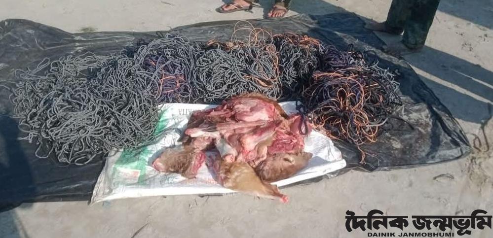 মোংলা প্রতিনিধি : সুন্দরবনের জোংড়া এলাকা থেকে ২৫কেজি হরিণের মাংস ও হরিণ শিকারের ফাঁদ জব্দ করেছেন বনবিভাগ। পূর্ব সুন্দরবন বিভাগের চাঁদপাই রেঞ্জ কর্মকর্তা দীপন চন্দ্র দাস জানান, গোপন সংবাদের ভিত্তিতে রবিবার বিকেলে জোংড়া টহল ক্যাম্পের পিছনের বনের গহীনে অভিযান চালায় বনপ্রহরীরা। এ সময় অভিযানকারীদের উপস্থিতি টের পেয়ে চোরা শিকারীরা দ্রুত বনের গহীনে পালিয়ে যান। পরে ঘটনাস্থলে তল্লাশি চালিয়ে ২৫কেজি হরিণের মাংস জব্দ করেন অভিযানকারীরা। জব্দকৃত হরিণের মাংসের সাথে রয়েছে মাথা, পা ও চামড়া। এছাড়াও জব্দ করা হয় প্রায় আধা কিলোমিটার দৈর্ঘ্যর হরিণ শিকারে ব্যবহৃত ফাঁদ (সুতা/দড়ি)।