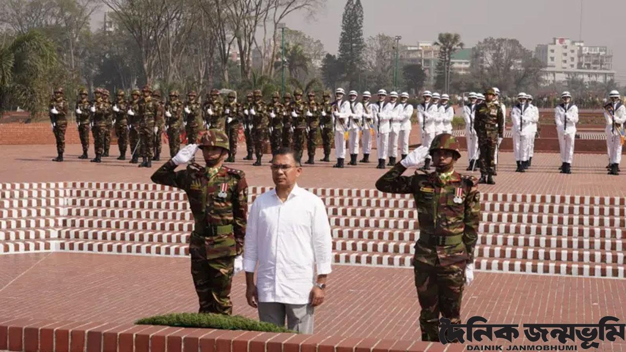 সাভারের জাতীয় স্মৃতিসৌধে একাত্তরে মুক্তিযুদ্ধে বীর শহীদদের প্রতি শ্রদ্ধা নিবেদন করেছেন প্রধানমন্ত্রী তারেক রহমান।