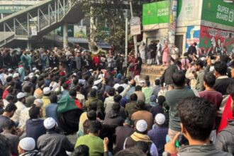 শুক্রবার (২ জানুয়ারি) জুমার নামাজের পর ঢাকা বিশ্ববিদ্যালয়ের কেন্দ্রীয় মসজিদ থেকে বিক্ষোভ-মিছিল শুরু করে ইনকিলাব মঞ্চের নেতাকর্মীরা শাহবাগ মোড়ে গিয়ে অবস্থান নেন।