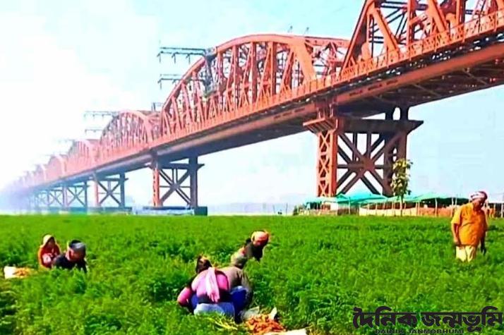কৃষক হাবিবুর রহমান বলেন, হার্ডিঞ্জ ব্রীজের পূর্ব পাশে লালন শাহ সেতু ও হার্ডিঞ্জ ব্রীজের মাঝ খানে পদ্মার চরে গাজর চাষের বাম্পার ফলন হয়েছে। আবহাওয়া অনুকূলে থাকায় এ বছর আগাম জাতের গাজরের ভালো ফলন হয়েছে। বিঘা প্রতি ১ লাখ টাকা থেকে ১ লাখ ৫০ হাজার টাকা পর্যন্ত দামে গাজর বিক্রি হয়েছে। তবে অন্য বছরের তুলনায় এবারে গাজর আবাদের খরচ বেড়েছে। গাজরের বীজ এবারে কৃষকরা বেশি দামে বিক্রি হয়েছে। পাশাপাশি কৃত্রিম সার সংকটের কারণে সরকারের নির্ধারিত দামের চেয়ে বেশি দামে সার কিনতে হয়েছে। শ্রমিকদের মজুরি বৃদ্ধির সঙ্গে আবাদের শুরুতে তীব্র খরায় দ্বিগুণ সেচ দিতে হয়েছে। গাজর চাষে আগে খরচ হতো সর্বোচ্চ ৪০ হাজার টাকা। এবারে হয়েছে ৬০-৭০ হাজার টাকা। তবে সার ও বীজের দাম বৃদ্ধির পাশাপাশি বিদেশ থেকে গাজর আমদানির ফলে কৃষকরা দেশীয় গাজরের ন্যায্যমূল্য পাচ্ছেন না। গাজর চাষিদের কেউ কেউ আগাম গাজরের দাম পেয়ে খুশি। আবার অনেকেই সার, বীজসহ অন্যান্য উপকরণের দাম বেড়ে যাওয়ায় লাভবান হচ্ছেন না বলে জানিয়েছেন।