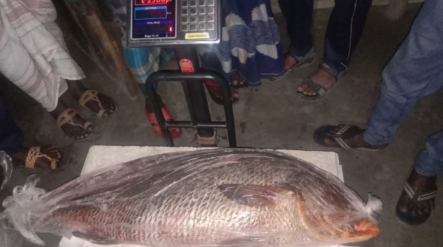 গত শনিবার (১০ ফেব্রুয়ারি) বনবিভাগ থেকে পাশ নিয়ে সুন্দরবনের নদীতে মাছ ধরতে যান উপকূলের ৯ জন জেলে। রাতে পশ্চিম সুন্দরবনের মালঞ্চ নদীর ফিরিঙ্গী এলাকা থেকে ২৫ কেজি ৩৬০ গ্রাম ওজনের মাছটি ধরা পড়ে শুকুর আলীসহ সঙ্গীয় জেলেদের জালে।