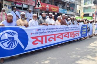 ডেস্ক রিপোর্ট : জুলাই সনদের ভিত্তিতে পিআর পদ্ধতিতে জাতীয় নির্বাচন আয়োজন, নির্বাচনে লেভেল প্লেয়িং ফিল্ড নিশ্চিত করা, গণহত্যার বিচার ও ফ্যাসিবাদের দোসরদের বিচারের আওতায় আনা, এবং বিচারকালীন তাদের কার্যক্রম নিষিদ্ধ ঘোষণার দাবীতে ইসলামী আন্দোলন বাংলাদেশের ঘোষিত কেন্দ্রীয় কর্মসূচির অংশ হিসেবে আজ বুধবার (১৫ অক্টোবর) সকাল ১১ টায় নগরীর পাওয়ার হাউজ মোড়ে ইসলামী আন্দোলন বাংলাদেশ খুলনা মহানগর ও জেলা উদ্যোগে মানবন্ধন অনুষ্ঠিত হয়েছে।