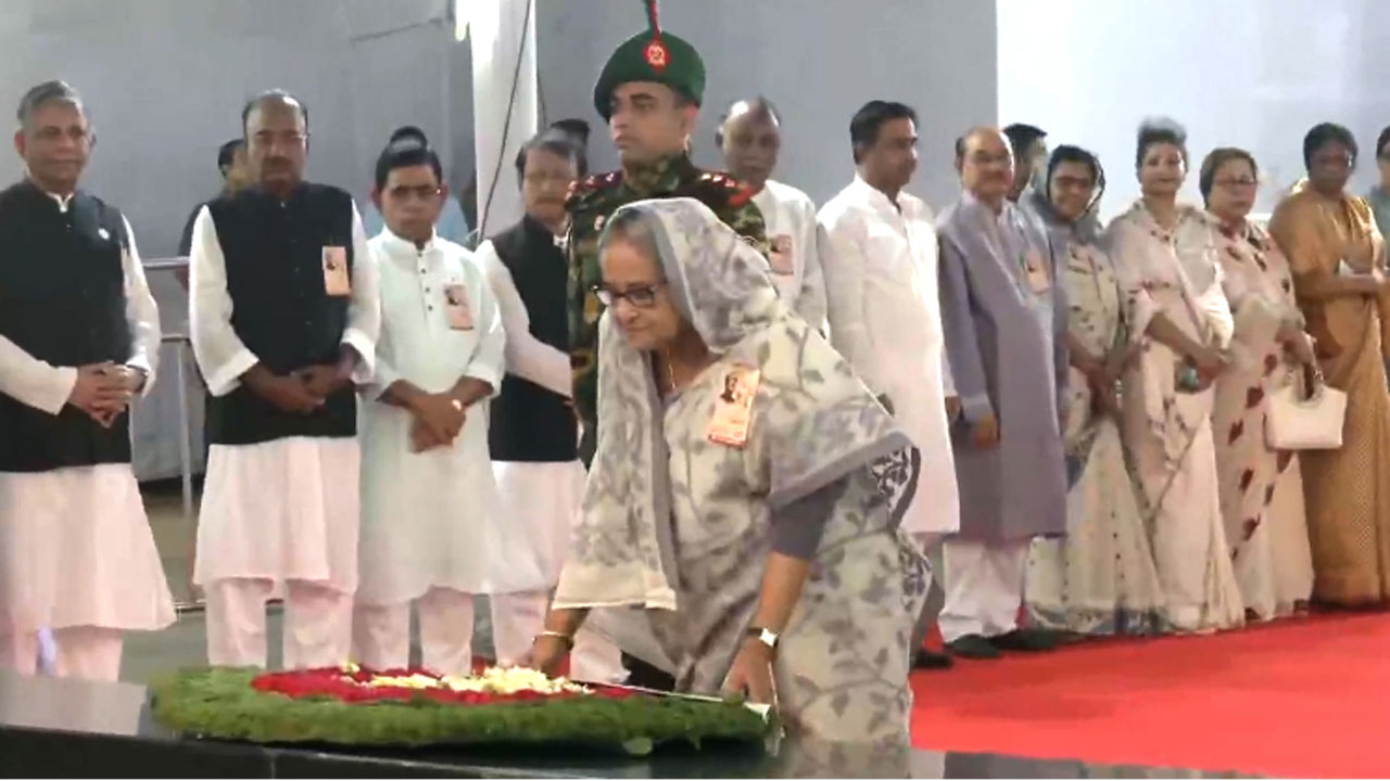 ঐতিহাসিক ছয় দফা দিবস উপলক্ষ্যে জাতির পিতা বঙ্গবন্ধু শেখ মুজিবুর রহমানের প্রতিকৃতিতে ফুল দিয়ে শ্রদ্ধা জানিয়েছেন প্রধানমন্ত্রী শেখ হাসিনা।