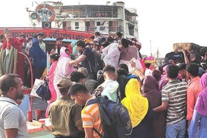 ঘরমুখো মানুষের উপচেপড়া ভিড় পাটুরিয়া ঘাটে