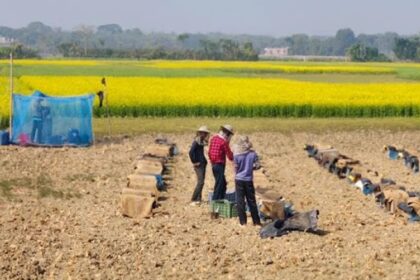 সাতক্ষীরা সরিষা ফুলে হলুদময় মাঠ, মধু সংগ্রহে ব্যস্ত মৌ-চাষিরা