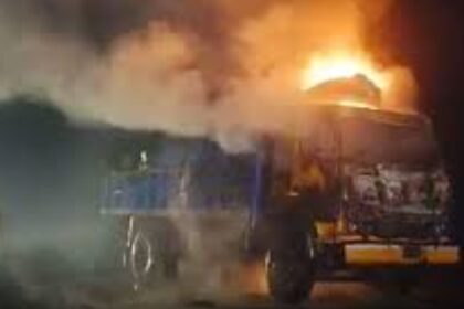 তালায় পাট বোঝাই ট্রাকে আগুন