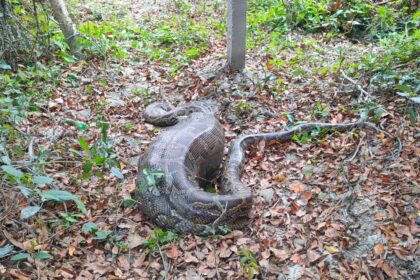 শরণখোলার লোকালয়ে বিশালাকার অজগর আস্ত ছাগল গিলে খেয়েছে ঃ অজগরটি সুন্দরবনে অবমুক্ত