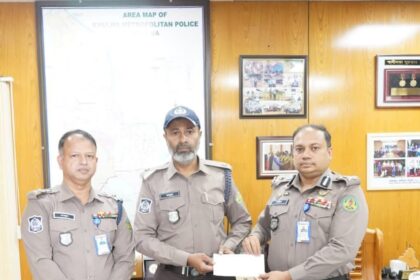 খুলনায় হত্যাকাণ্ডের পর সাহসিকতায় সন্ত্রাসী গ্রেফতার: ট্রাফিক পরিদর্শক মাহমুদ আলমকে পুরস্কৃত করলেন কেএমপি কমিশনার