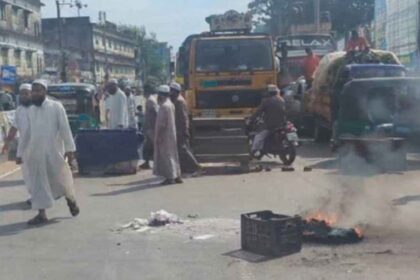 রাউজানে বাসের ধাক্কায় হেফাজত নেতার মৃত্যুর ঘটনায় সড়ক অবরোধ