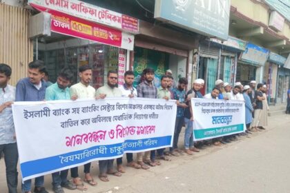 ইসলামী ব্যাংকে অবৈধ নিয়োগকৃতদেও ছাটাইয়ের দাবিতে ফুলতলায় গ্রাহক ফোরামের মানববন্ধন