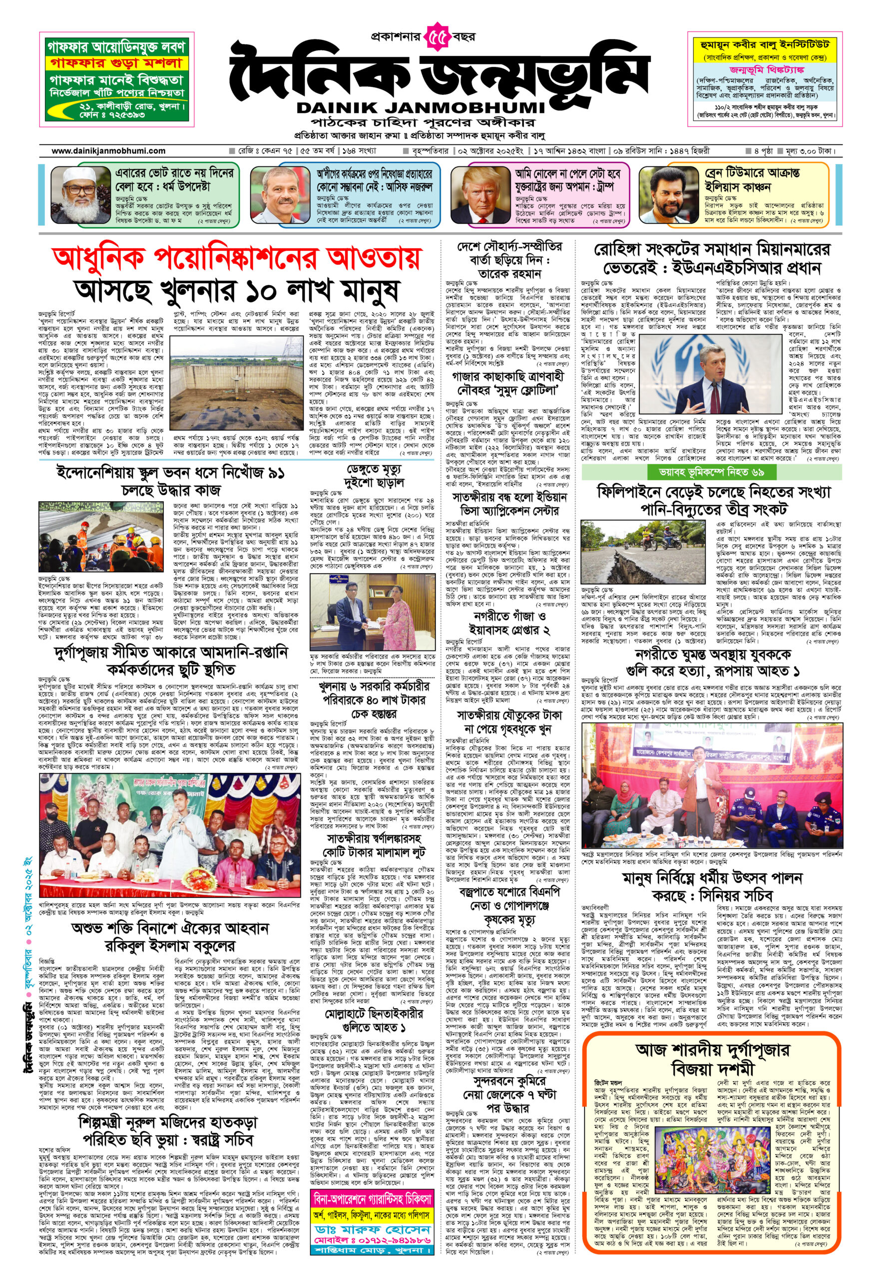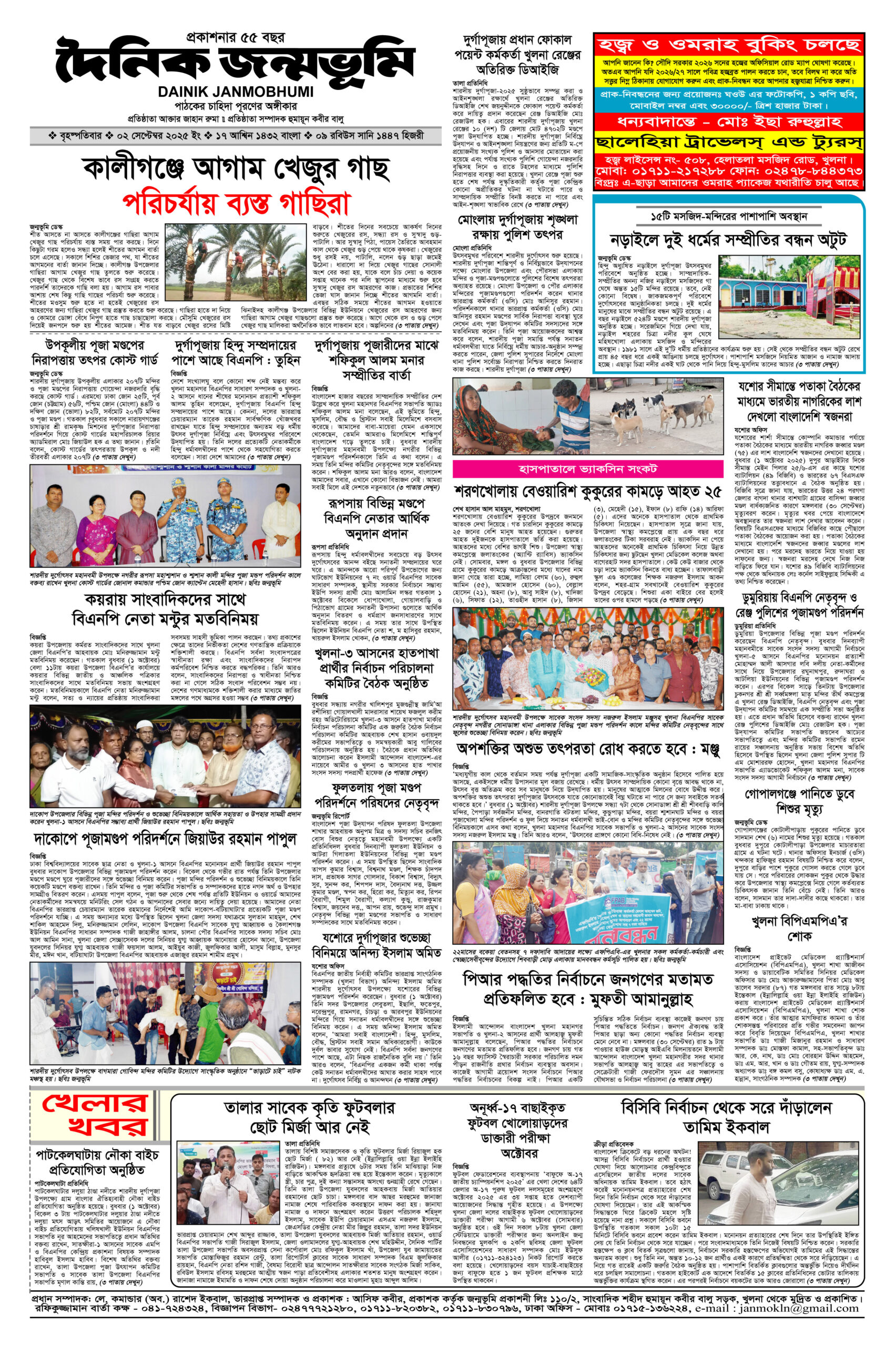 প্রধান সম্পাদক মনিরুল হুদা, প্রকাশক আসিফ কবীর কর্তৃক জন্মভূমি প্রকাশনী লি: ১১০/২,সাংবাদিক হুমায়ুন কবীর বালু সড়ক, খুলনা থেকে মূদ্রিত ও প্রকাশিত