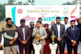ভেড়ামারা প্রতিনিধি : কুষ্টিয়ার ভেড়ামারা সরকারি কলেজ মাঠে মঙ্গলবার দুপুর ১২টার সময় তারুণ্যের উৎসব’২৫ উপলক্ষে ক্রীড়া প্রতিযোগিতা আনুষ্ঠানিক ভাবে উদ্বোধন করেন। উদ্বোধনী অনুষ্ঠানে সভাপতিত্ব করেন, ভেড়ামারা উপজেলা নির্বাহী অফিসার রফিকুল ইসলাম। প্রধান অতিথি হিসাবে উপস্থিত ছিলেন, কুষ্টিয়া জেলা প্রশাসক ও বিজ্ঞ জেলা ম্যাজিস্ট্রেট তৌফিকুর রহমান। বিশেষ অতিথি হিসাবে উপস্থিত ছিলেন, ভেড়ামারা সরকারি কলেজের অধ্যক্ষ প্রফেসর মোঃ আব্দুস সাত্তার, উপজেলা সহকারী কমিশনার (ভূমি) আনোয়ার হোসাইন, উপজেলা মাধ্যামিক শিক্ষা অফিসার ফারুক আহমেদ, ভেড়ামারা সরকারি কলেজের ক্রীড়া বিভাগের প্রধান জাহাঙ্গীর হোসেন জুয়েল প্রমুখ। তারুণ্যের উৎসব’২৫ উপলক্ষে ক্রীড়া প্রতিযোগিতায় ভেড়ামারা উপজেলার ৬টি ইউনিয়ন ও ১টি পৌরসভার ৭২ জন ক্রীড়াবিদ ও ৮টি ক্রিকেট টিম অংশগ্রহন করেন।